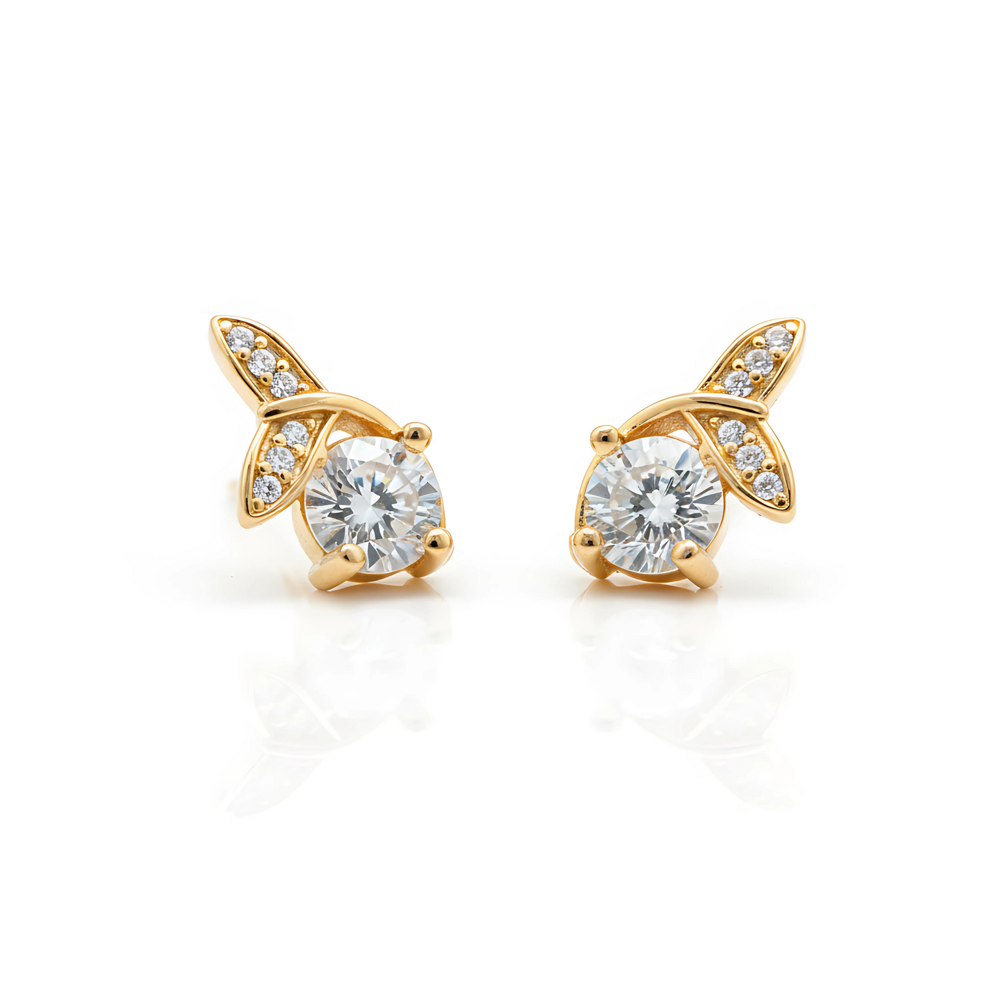 Add a touch of elegance to your everyday style with these gold-plated stud earrings. Featuring a sparkling round cubic zirconia stone adorned with a delicate double-leaf design studded with micro CZ crystals, this pair strikes the perfect balance between modern minimalism and timeless charm.